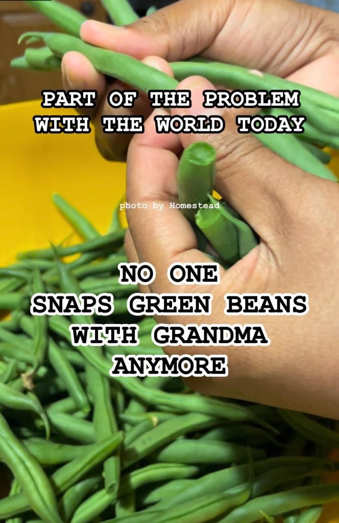 Take a walk in your neighborhood gardens and snap some green beans with your grandma today. I guarantee you will feel better.