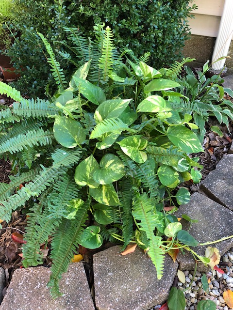 Every autumn comes the day to gather the perennials indoors for their winter home, the basement. Dean and I know it is coming, and make room in the basement under the plant lights. Some years it is sooner rather than later. For 2021, it is much later. The cool mid-40’s mornings warm up quickly to warmer, mild afternoons. The weather forecast shows a probable frost in the 3-day forecast. I pluck falling gold, orange, and red leaves from the plants’ foliage and take cuttings while the perennials are outdoors. The cuttings we propagate for next spring’s pots. I gather a variety of these cuttings in water-filled recycled mayo and jelly jars. Both of my daughters have a love for our green friends so some jars of cuttings will get passed on.