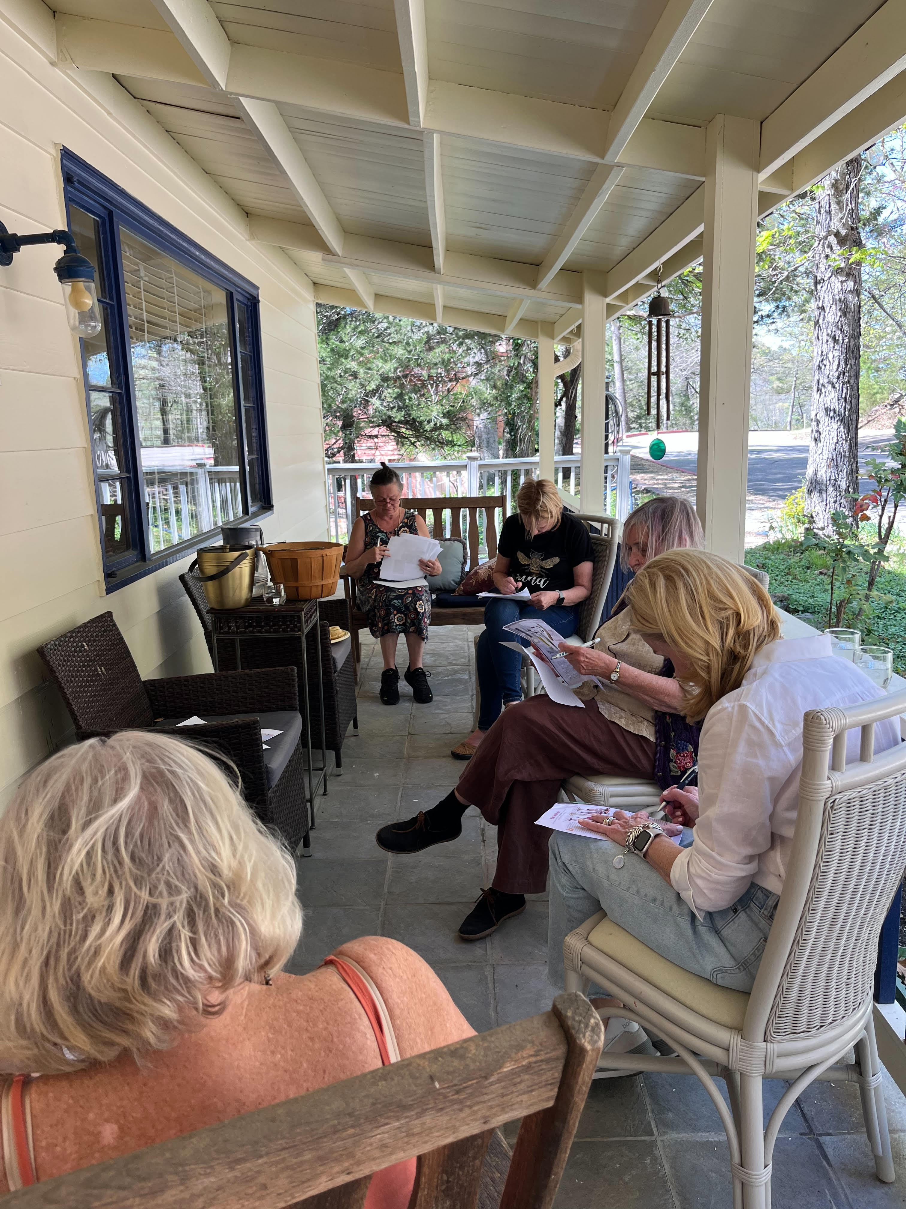 A jot down to Arkansas Ozarks last weekend brought Dean and I to Eureka Springs. I facilitated a culinary and writing workshop at the Writers’ Colony at Dairy Hollow on Saturday afternoon. The Culinary Suite is housed in another cute cottage. I felt right at home making preparations for the culinary lesson on lemon and herbs in the suite’s pristine kitchen space. Five lovely local ladies from town came for the workshop. We all enjoyed making and indulging in lemon herb tea bread in the kitchen then moved onto the front porch to write block-out poems. Porch chatter and lots of laughs to share with the ladies on that sunny spring afternoon after the rains. Life surely is sweet. God’s blessings besmeared on us. April’s anointing.