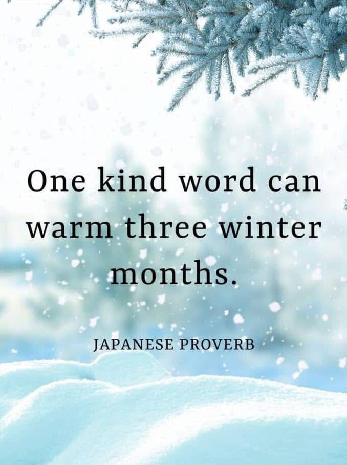 “One kind word can warm three winter months.” ~ Japanese Proverb