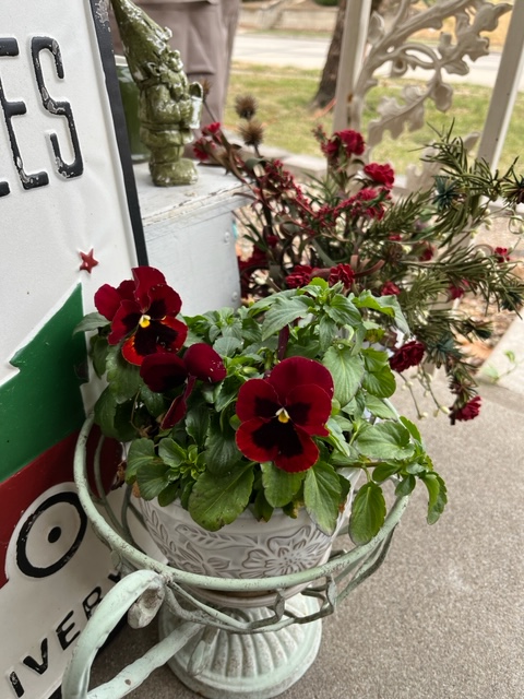 Dean hopes to retire in about four years. I picture him in free-lance research & consulting after his work with the National Archives, as his love for history is broad. He returned to the federal building two days a week this autumn, works remotely the other three days. My 61-years old hubby remains in good health; tall, dark, & handsome as ever in his salt & pepper hair. Dean tinkers with his plane models or the bird feeders where he tries to make them squirrel-proof. Key word is “tries”. A December tornado just missed our greenhouse/screenhouse in Defiance. Spring greens from the screenhouse still fill our salad bowls during the warm weather months. Harvested herbs spice up our dishes during the winter months. Our hydrangea blooms provide texture and color the year round inside & out. We revel over the maroon pansies blooming on the porch planter late into December, the longest growing season that I recall. No white Christmas here. In 2022 I hope to complete my first book of short stories with a culinary theme as well as a poetry chapbook. Meantime, I write & will submit to more literary magazines & websites. Our feathered derby & cloche hats wait on the chaise for our next outing on the town. Established routines such as quiet time, prayers, & journaling are interwoven with such spontaneity. The days do not have to be same old, same old. Revere each day & moment like a gift. Then it becomes just that, a gift even on the difficult days. Sometimes it’s a simple red apple from the fruit basket, or a fancy wrapped package. Untie the bow, unwrap the paper. There is something wonderful inside for you. God-given.